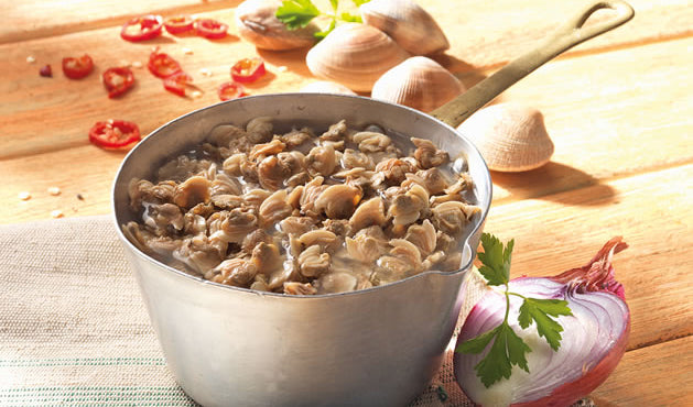 Almejas escogidas por su calidad y tamaño, al natural. Adecuado para condimentar primeros platos, para preparar aperitivos.